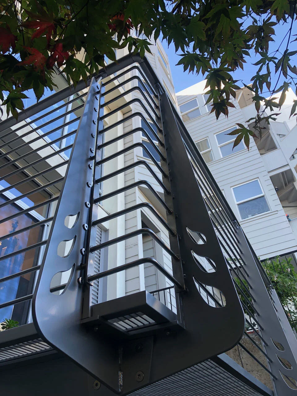 A collaboration between our client and one of his favorite artists, these railings add style and safety to this San Francisco roof deck. The CNC-cut filigree was inspired by La Victrola, one of the client’s favorite art installations.